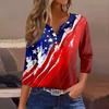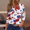 Women's T Shirt Independence Day Print Button 3/4 Sleeve Daily Weekend Fashion Basic V- Neck Regular Top