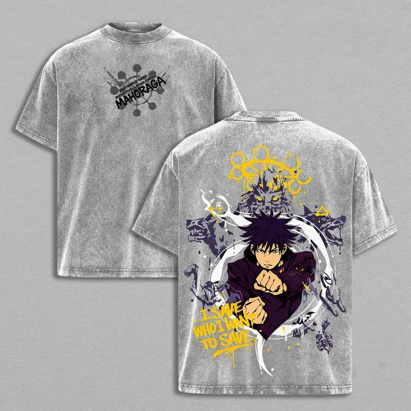 Jujutsu Kaisen Fushiguro Megumi T-shirt Anime Printed Washed Oversized T Shirt Men Women Clothing High Quality Cotton Tees Tops
