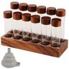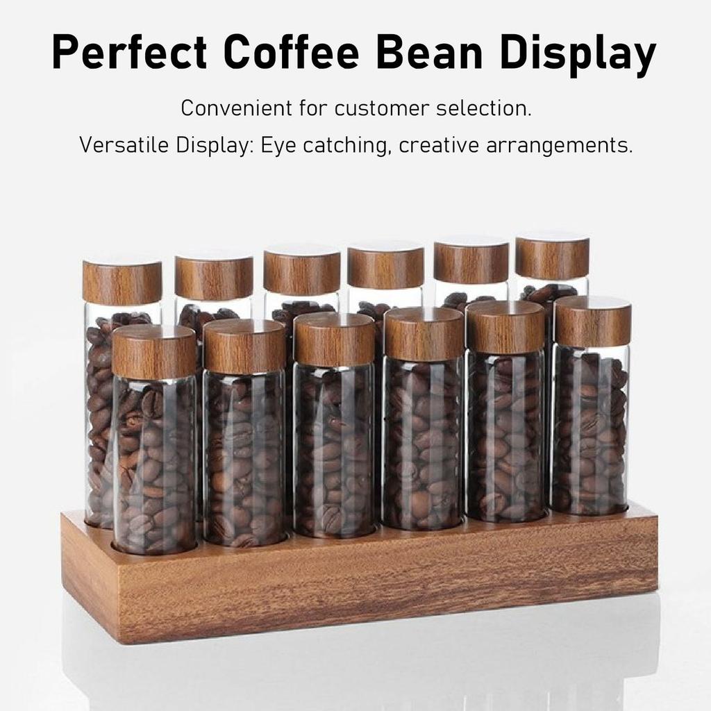 Wooden Base Coffee Bean Display Stand with 12 Clear Glass Tubes and Funnel for Cafe Bar Counter Storage