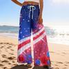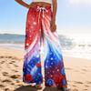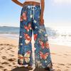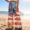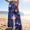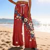 Dámské letní boho palazzo kalhoty s vysokým pasem a širokými nohavicemi, tisk, ležérní kalhoty s kapsami