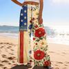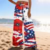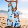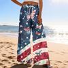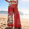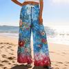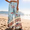 Dámské letní boho palazzo kalhoty s vysokým pasem a širokými nohavicemi, tisk, ležérní kalhoty s kapsami