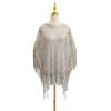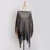 Through Hollow Out Pareo Solid Color Tassels Shawls Sexy Long Sleeve Cover Up for Women