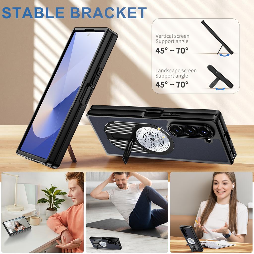 For Samsung Galaxy Z Fold5 5G Magnetic Case Heat Dissipation Aromatherapy Kickstand Silicone+PC Phone Cover