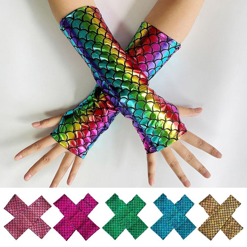 Colorful Design Fish Scale Gloves Fish Scale Pattern Cosplay Gloves Dress Accessories