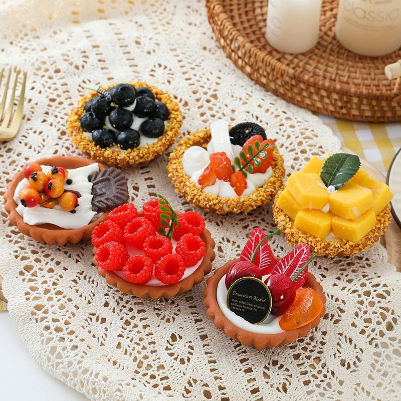 7PCS Fruit Egg Tart Artificial Cake Lifelike Fake Mango Cute Simulation Strawberry Home Decoration Ins Photograpy Props