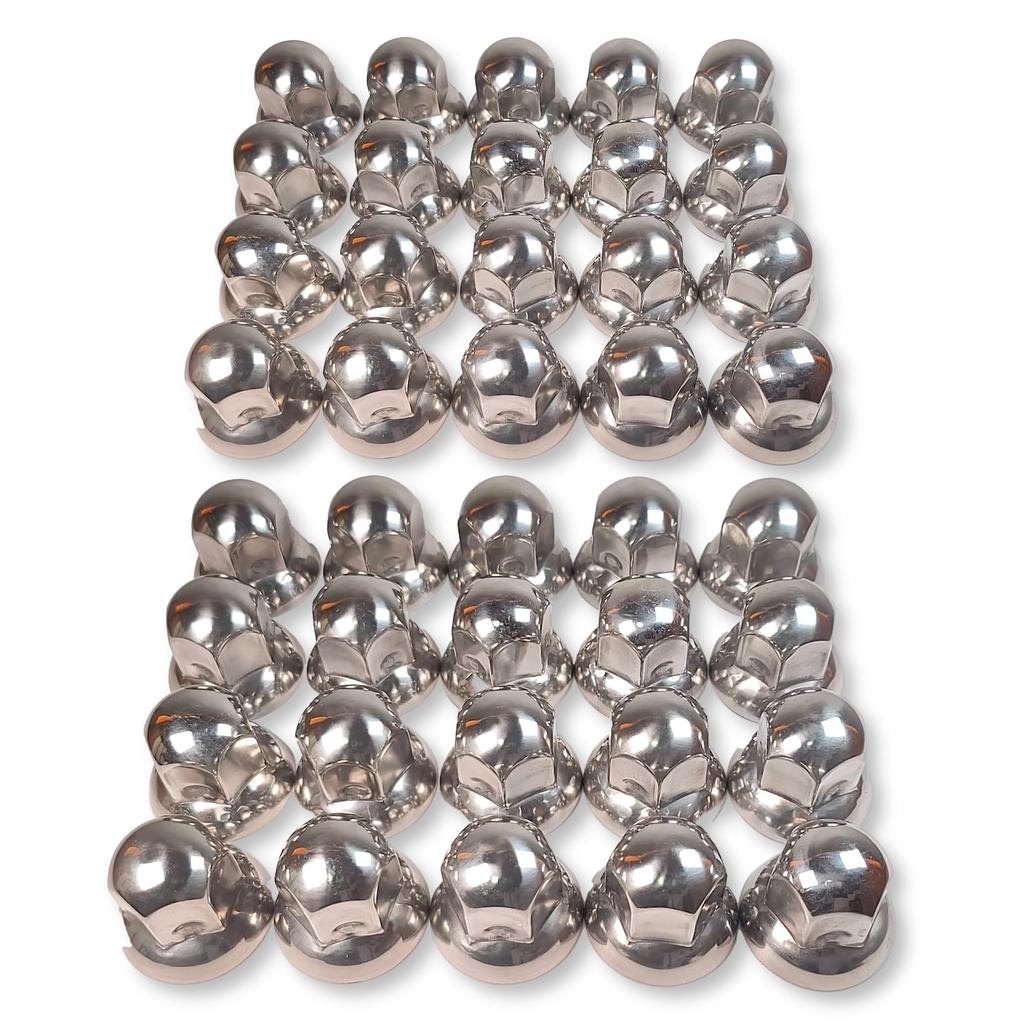 Lezalic Stainless Steel Nut Mirror ISO 46mm for Large Dump Decorative Custom Universal Fit of 40 Caps, Finish, 33mm, Tall, Round, 10-Lug Trucks,