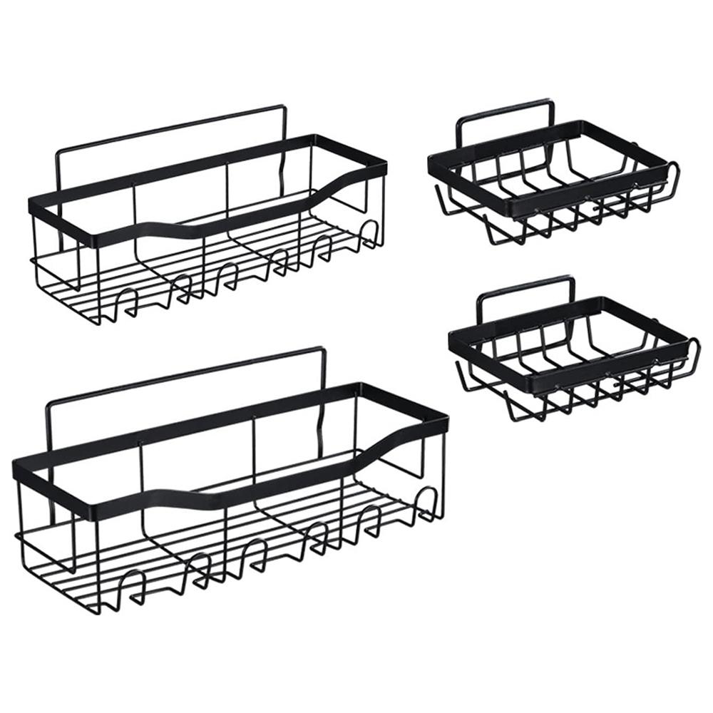 4Pcs/Set 6-Hook Style Punch-Free Carbon Steel Storage Basket Bathroom Draining Organization Rack