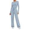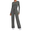 Women's Fall Two Piece Outfits Long Sleeve Tops Tee Shirts Wide Leg Pants Sets