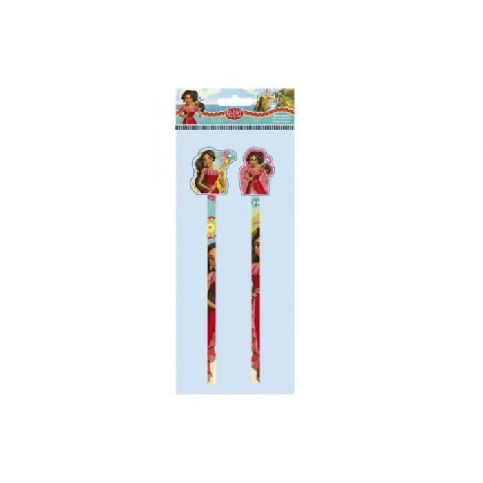 Crayons de papier et gommes - Elena Avalor - Lot de 2 - Couleur rose - Pour enfants