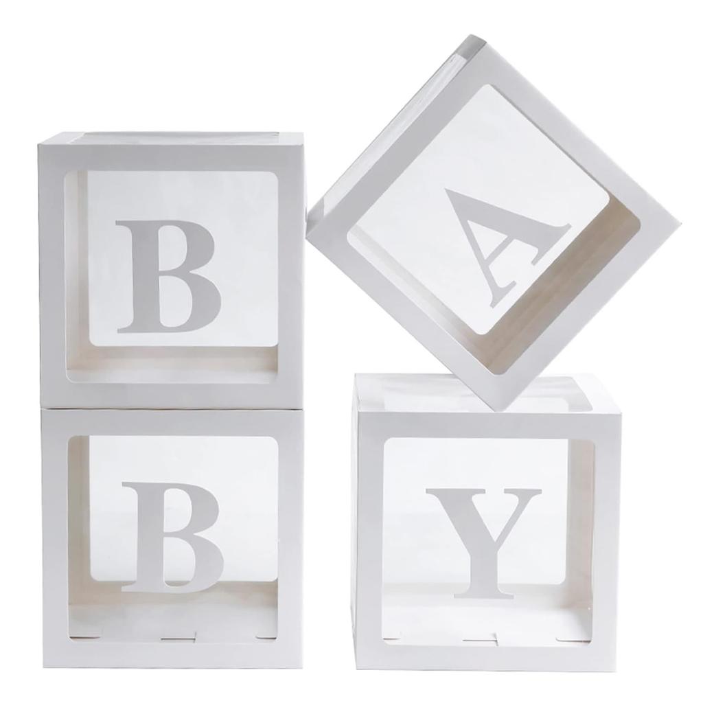 Baby Boxes with Letters for Baby Shower 4 Pcs Clear Balloon boxes Baby Sign Transparent Baby Shower Decorations Block Boxes