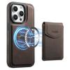 DENIOR D19 For iPhone 15 Pro Max Magnetic Case Leather+PC+TPU Cover with Detachable Card Bag