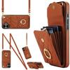 Pouzdro na iPhone 16 s kapsou na karty, kůže+TPU, crossbody kryt na telefon s kroužkem a stojánkem