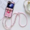 For Samsung Galaxy Z Flip7 FE 5G/Z Flip6 5G Case Heart Pattern Leather+PC Phone Cover with Crossbody Beaded Strap