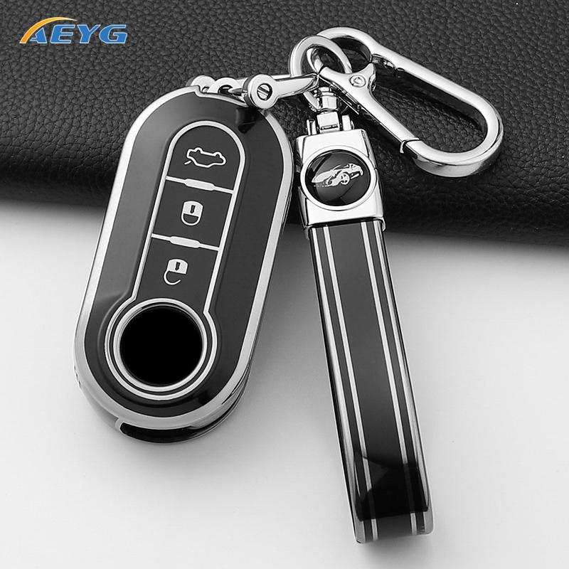 Car Key Case Cover for Fiat 500 Ducato Panda 500L Punto Lancia Musa for Citroen Car Keyring Luxury Keychain Interior Accessories