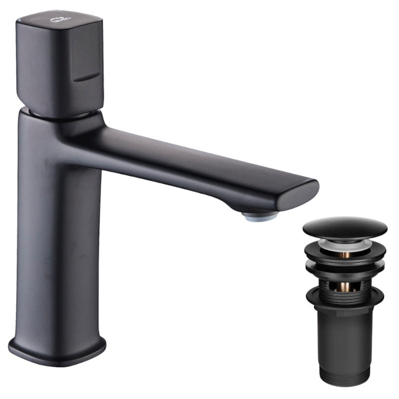 LAVEO Tores low-mounted washbasin tap with stopper, black