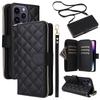 Pro iPhone 14 Pro Max Pouzdro Kosočtvercová Peněženka Kabelka PU Kůže Kryt na Telefon s Ramenním Popruhem