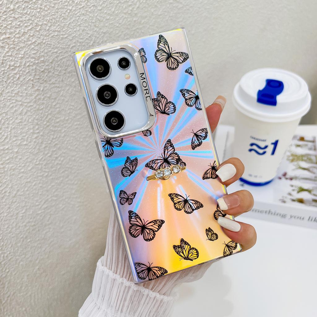 For Samsung Galaxy S23 Ultra Case Electroplating Laser Butterfly Pattern Anti-Scratch Phone Cover