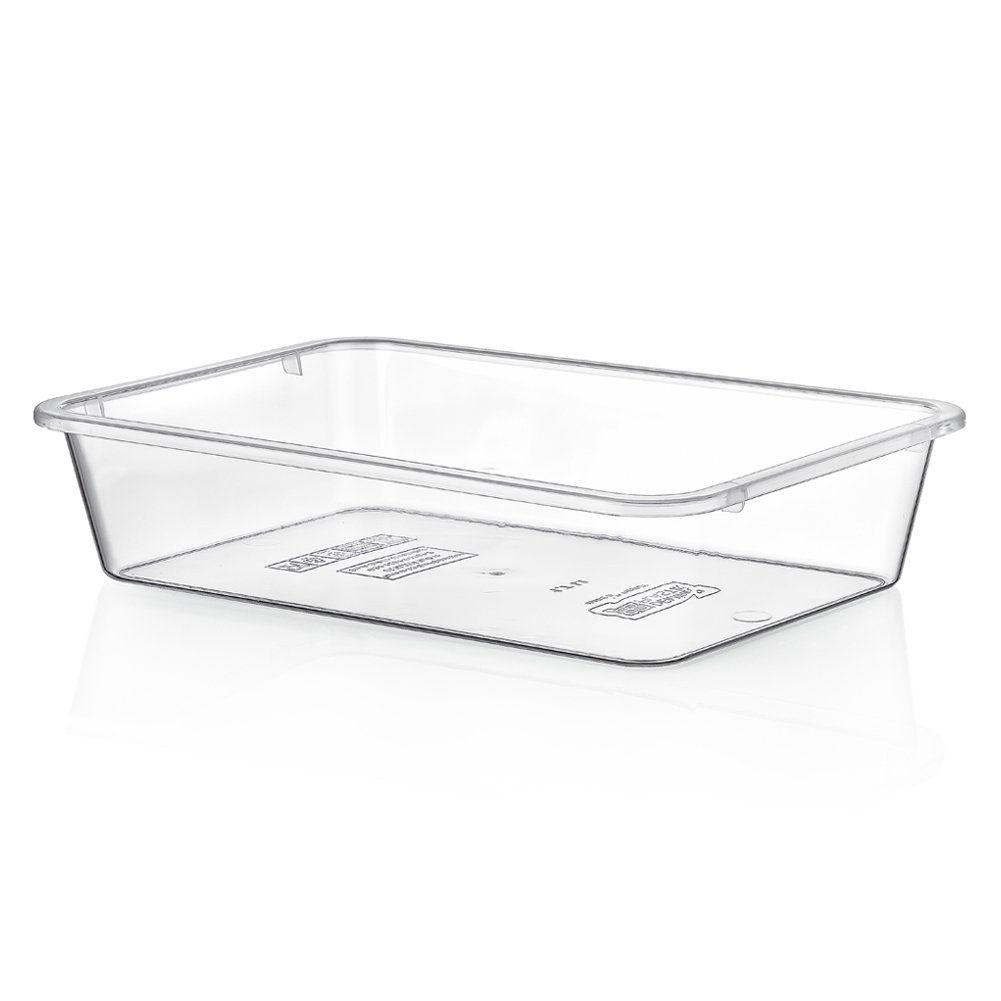 Kuchenny pojemnik do przechowywania produktów spożywczych. Świetnie sprawdzi się jako organizer do lodówki, zwłaszcza do przechowywania owoców oraz warzyw. Dzięki przezroczystej formie można z łatwością zobaczyć zawartość pojemnika. Jest łatwy w utrzymaniu czystości oraz odporny na niskie i wysokie temperatury. Pojemnik nie posiada pokrywki. Przydatny w każdym domu. Wyprodukowano zgodnie z europejskimi standardami.