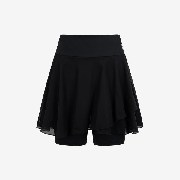 The Fila FILA Tennis Mesh Skirt is designed for women engaged in tennis and outdoor activities, featuring a comfortable waistband and a short mini length that allows for excellent mobility. The mesh material enhances breathability, and the side pocket detail allows for easy storage of small items. The main color is black.