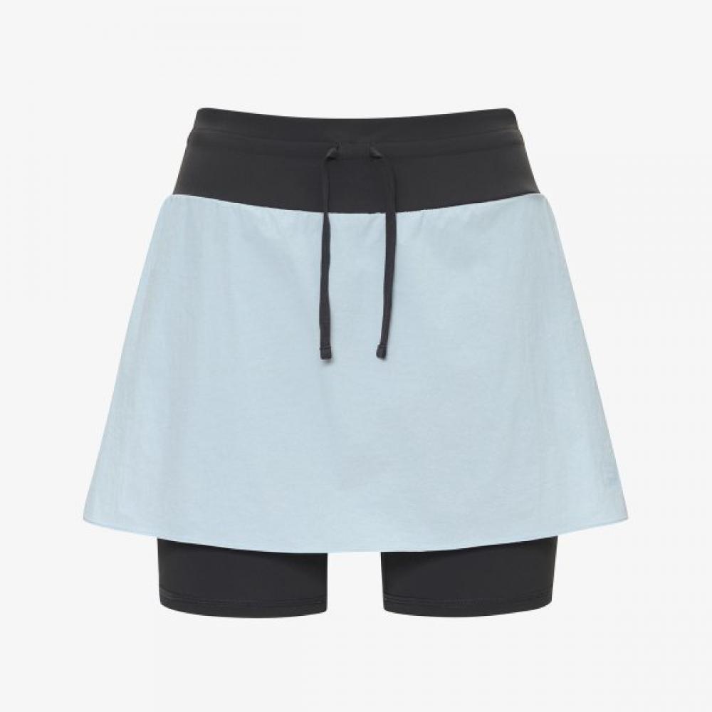 The FILA running skirt leggings are women's training bottoms suitable for running, training, and yoga. Made with soft and stretchy nylon spandex single material, they offer a lightweight feel, while the added skirt allows for freedom of movement. The leggings provide stable support for the thighs and hips, reducing muscle shake and offering body contouring effects. They possess excellent moisture-wicking properties to quickly absorb and dry sweat, maintaining long-lasting comfort. The special cool moisture-wicking functional band enhances waist stability. Designed to fit the human body's curves, they do not cause discomfort when bending the legs. A back pocket allows for easy storage of small items.