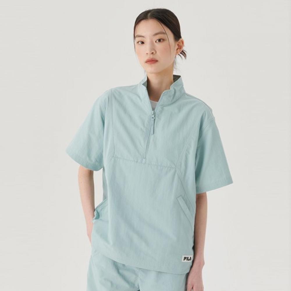 The FILA Antibacterial Essential Short-Sleeve Anorak is a men's sports t-shirt with an antibacterial deodorizing function. It is suitable for summer or indoor activities and is made from 100% nylon. The color is Silver, making it versatile for general sports activities or casual wear.