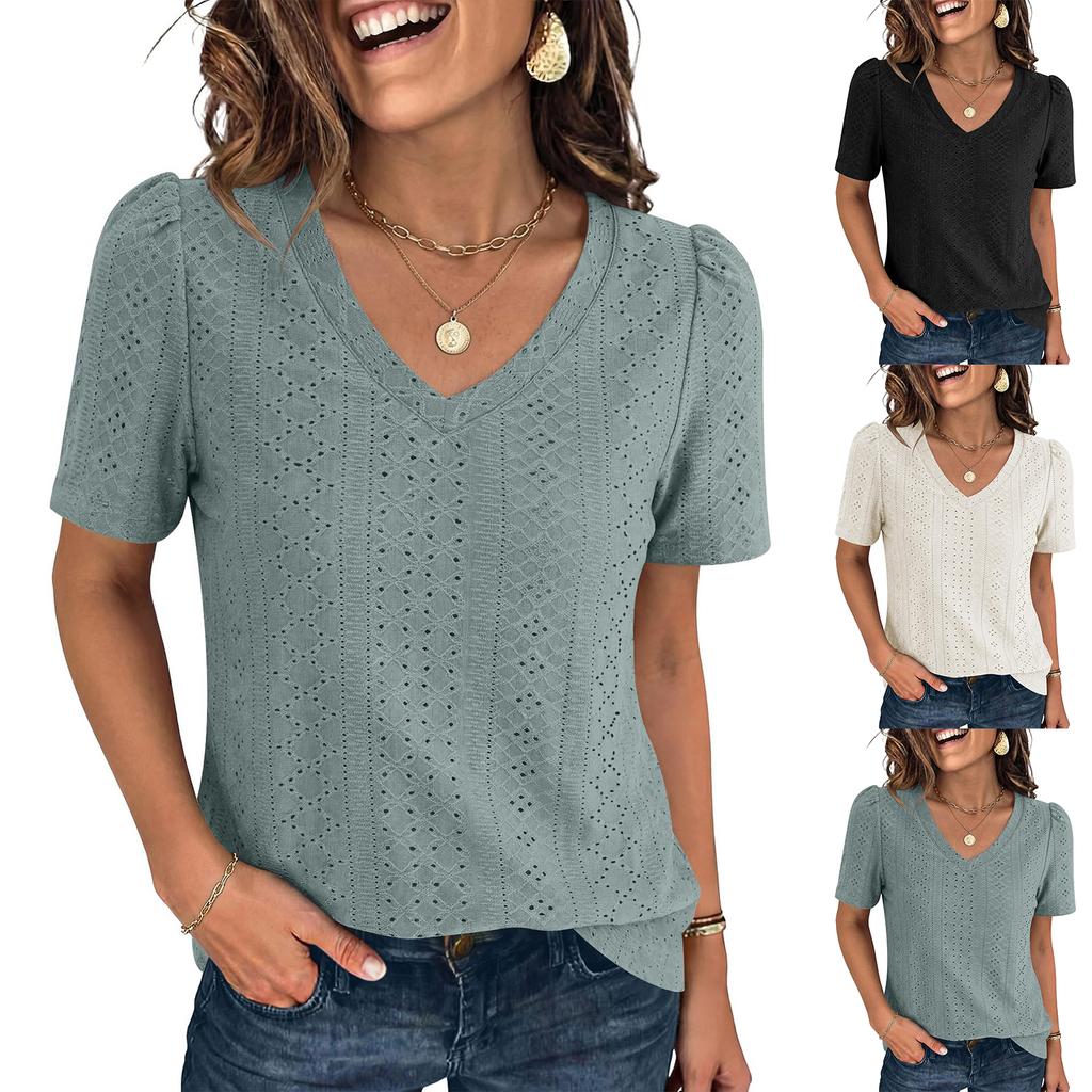 Women's fashionable loose casual openwork short-sleeve top