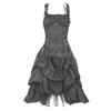 Halloween Středověké Gotické Šaty Steampunk Viktoriánské Černé Šaty Bez Rukávů Volánkové Lolita Palácový Dvorní Princeznovský Roucho pro Ženy