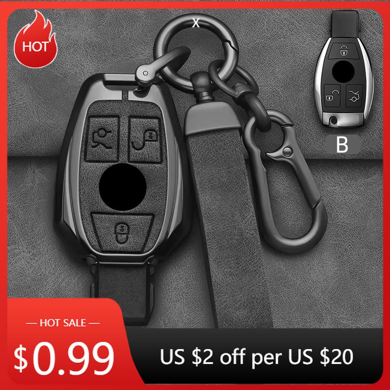 2025 Hot Car Sticker Alloy Style Car Key Case Cover Shell Fob For Mercedes Benz A B C E G Class C200 C300 E350 W205 E260L GLK A4