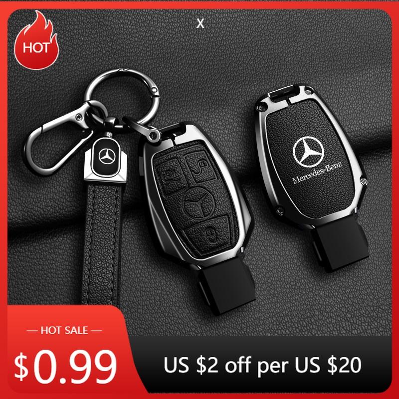 2025 Hot Car Sticker Zinc Alloy Leather Car Key Case Cover Holder Shell Protector For Mercedes Benz A B C S Class AMG GLA CLA GL