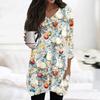 Womens Tops V-neck 3/4 Sleeve Blouses Casual Mid-length Shirts Fashion Print Tunic Tops With Pockets
