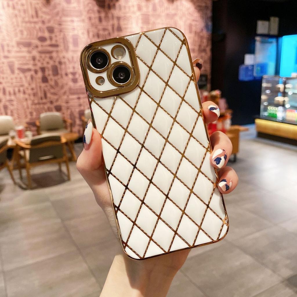 For iPhone 15 Case Rhombus Pattern 6D Electroplated Protective Back Shell