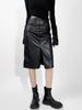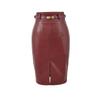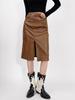 Slimming PU Leather High Slit Midi Skirt - Retro High Waist Hip-Hugging Style