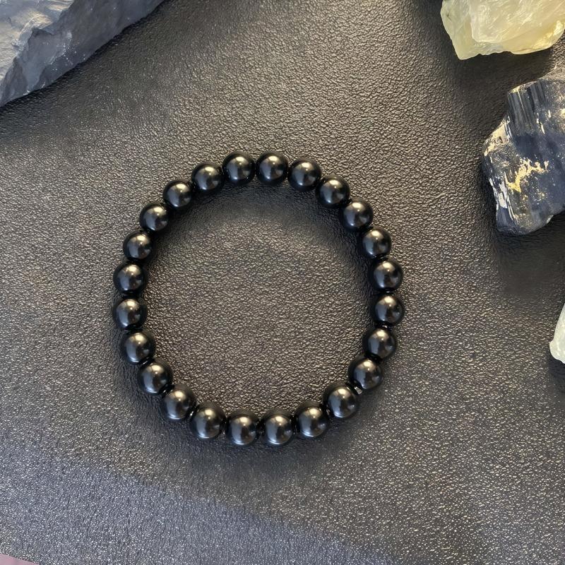 Elegant Obsidian Beaded Bracelet - Smooth Polished Natural Stone, Perfect Gift for Holiday, Mother's Day Valentine's Day