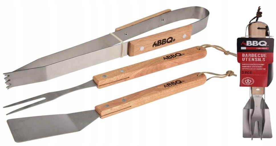 3-in-1 Grill Accessory Set Stainless Steel with Wooden Handle