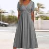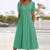 Letní Jednobarevné Šaty Ležérní V-výstřih Krátký Rukáv Střední Až Dlouhá Délka Šaty Dámské Oblečení