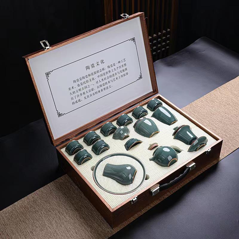 Ge Kiln Tea Set Gift Box Set Ceramic Kung Fu Opening Side Handle Teapot Household Tea Ware Gift Companion Gift Box