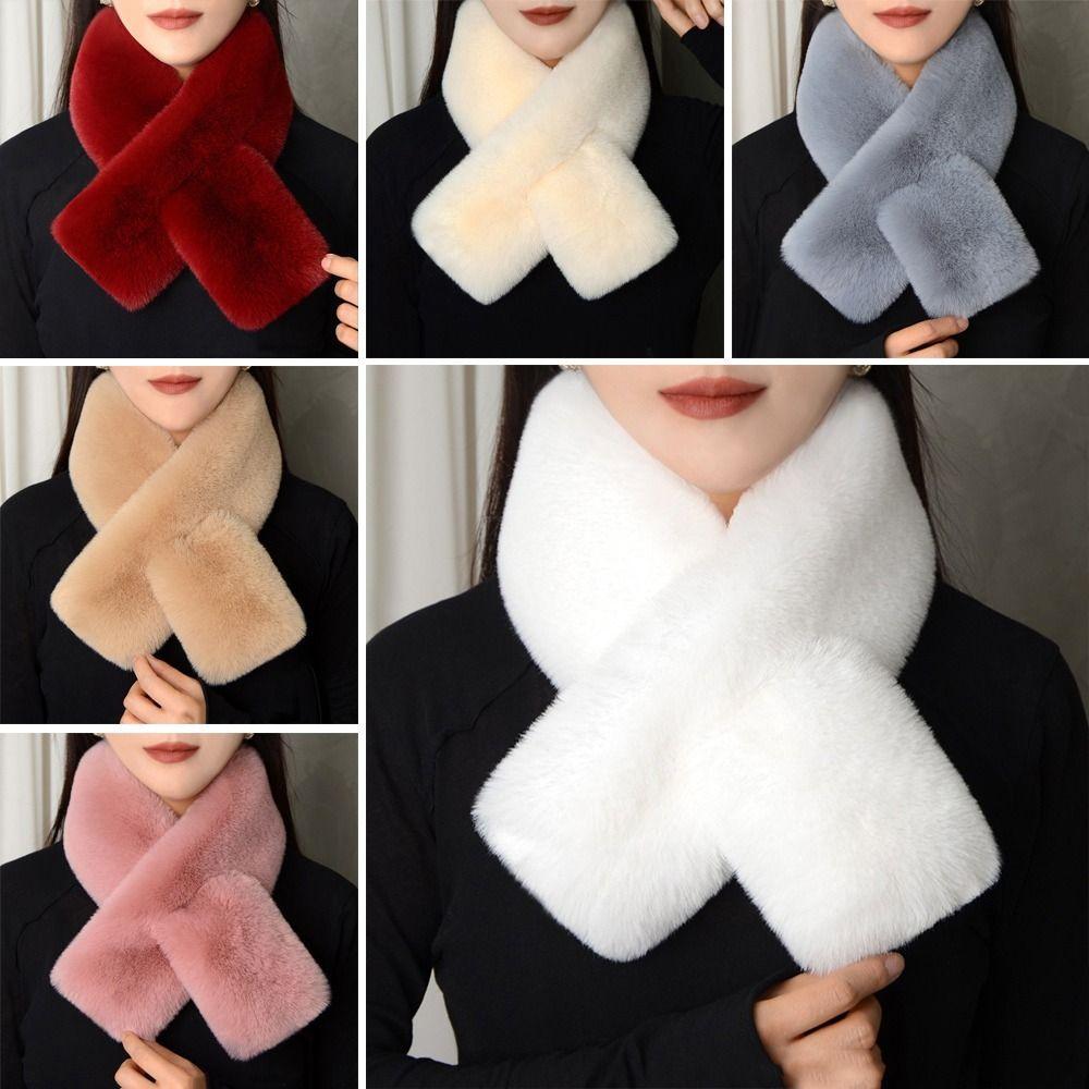 Thickened Cross Scarf Plush Faux Rabbit Fur Scarf Cute Neckerchief Wrap Autumn Winter