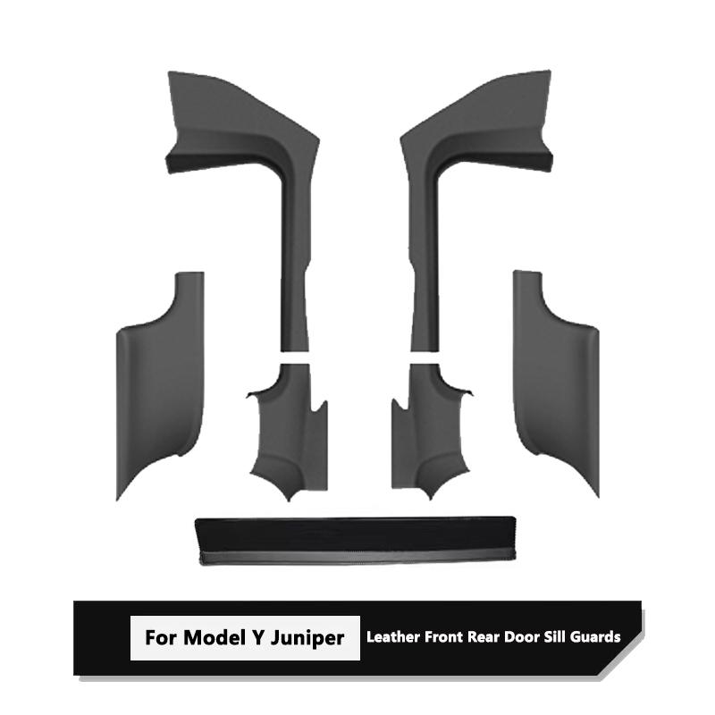 For Tesla Model Y Juniper Front Rear Door Sill Protection Pads Leather Threshold Bumper Strip Guards Anti-kick Pad Accessories