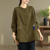 Women's 2025 Cotton Gauze Round Neck Long Sleeve Loose Embroidery Shirt