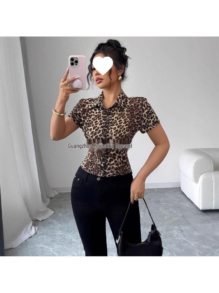 2025 Summer Women's Slim Fit Leopard Print Short-Sleeve Fashion Shirt