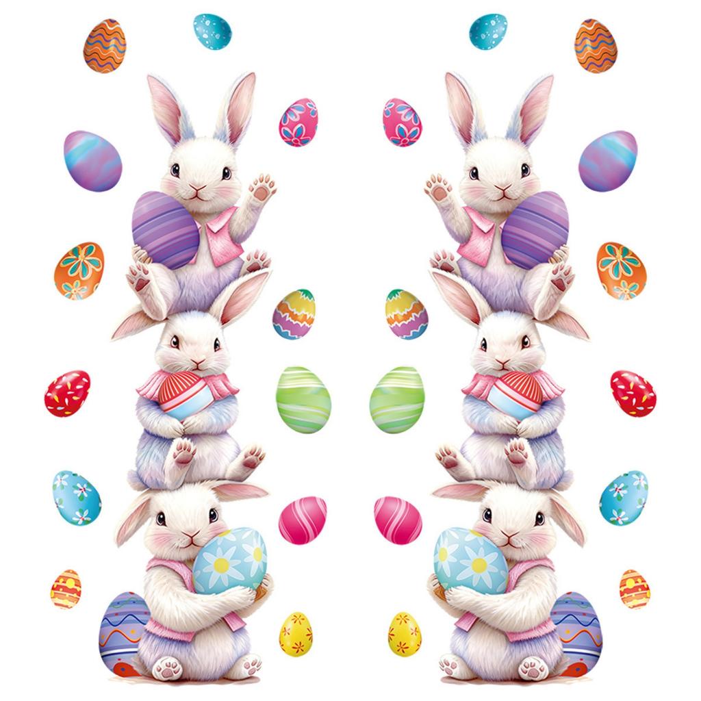 2 archy velikonoční zajíček samolepky na okno kreslená vajíčka roztomilá dekorace pro domácnost učebnu školku obchod skleněná výloha dekorace