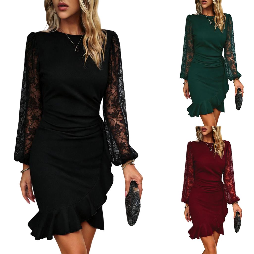 Dámské ležérní a elegantní šaty s krajkou a nabíranými rukávy