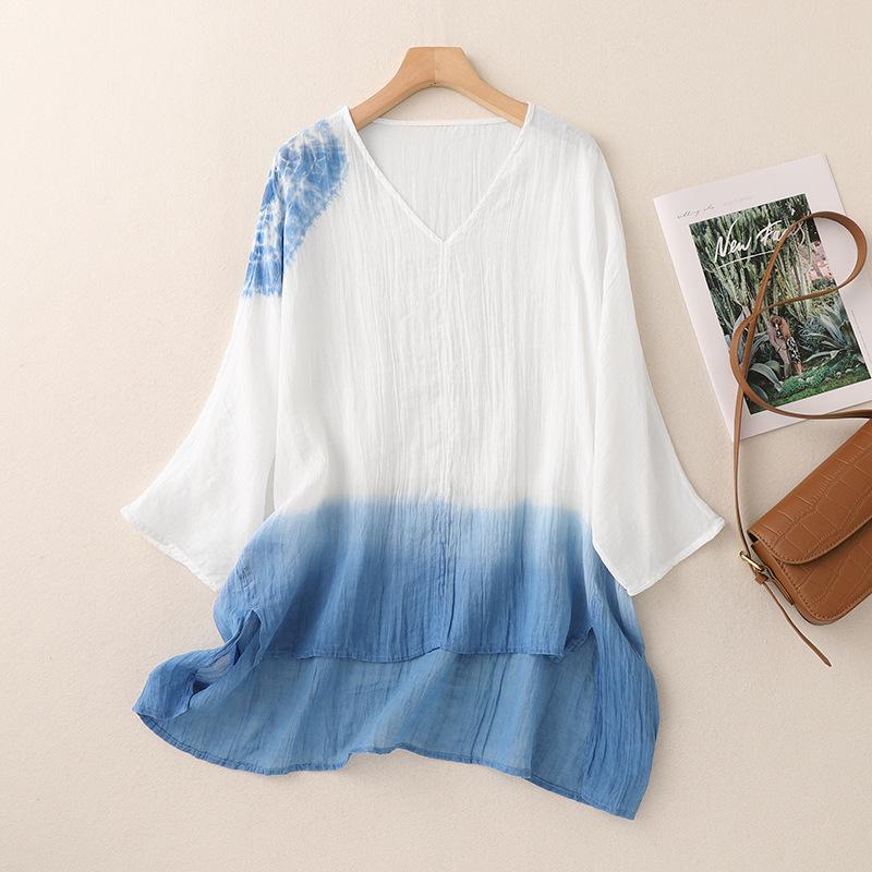 Women's Summer Retro Ink Splatter Batwing Sleeve Ramie Top