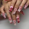 24PCS Glitter Pink French Simple Press on False Nails Golden Bow Patterns Sweet Cool Long Square Fake Nails Spice Girls Wearable