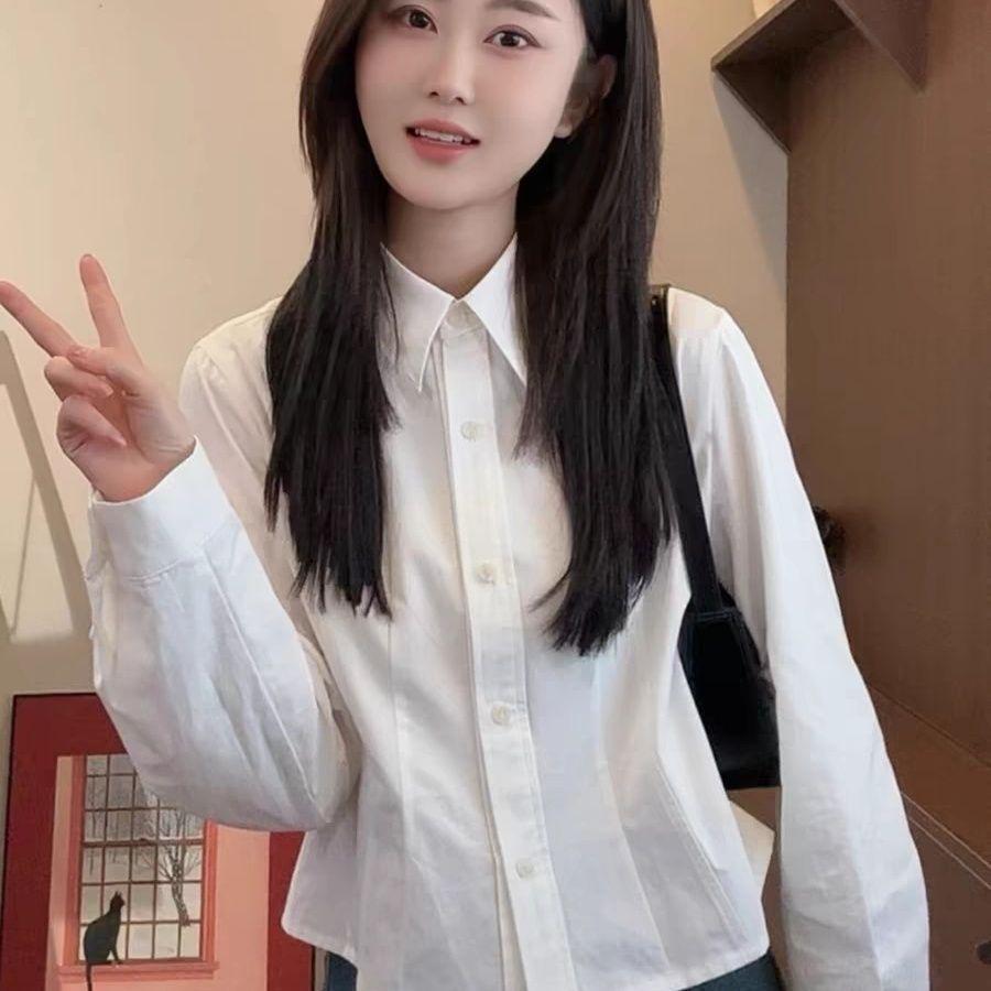 Women's Autumn/Winter Velvet Warm Long-Sleeve Lapel Shirt - College Style, Slimming, Sweet Design