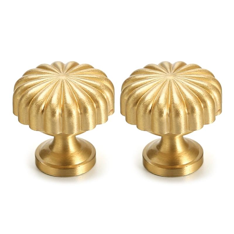 2Pcs Cabinet Pull Brass Dressers Knob Round Stripe Drawer Door Pulls Handles Kitchen Bedroom Furniture Hardware