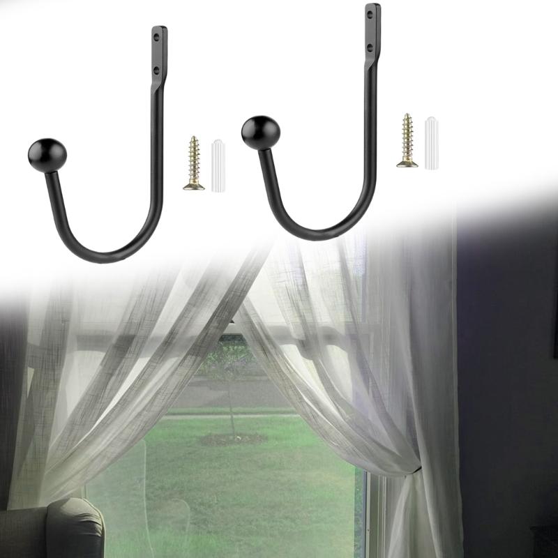 2/4Pieces Black Aluminum Alloy Curtain Holdbacks Designs for Stylish Window Treatments In Living Room and Bedroom