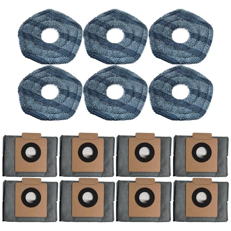 Fiber Replacement Accessories Suitable For X10 Omni Robot Vacuum Refill Includes 6 Mop Cloths And 8 Dust Collection Bags