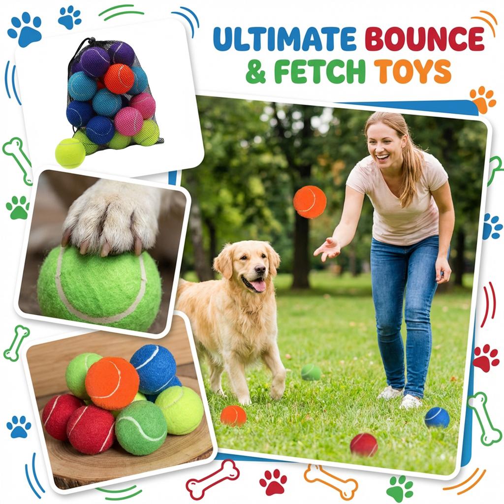 16-Pack Colorful High- Rubber Pet Tennis Balls - Interactive Training & Play Balls For Dogs, Random Colors