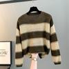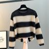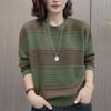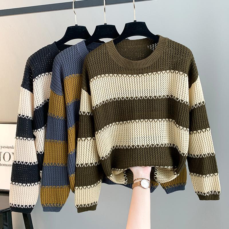 Wide Striped Long-sleeved Loose Round Neck Sweater for Women Spring and Autumn Thin Versatile Sweater